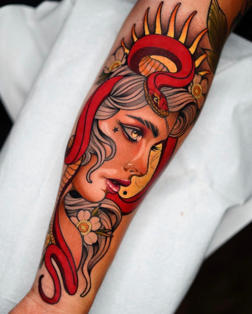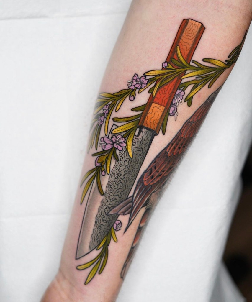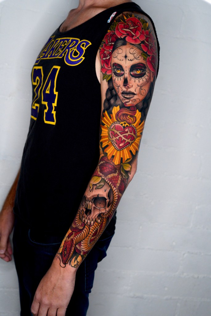 “Originally from Brazil and now calling Los Angeles home, I am a tattoo artist specializing in neotraditional style. My work combines vibrant colors, bold lines, and intricate details, drawing inspiration from both classic tattoo art and contemporary aesthetics. I am passionate about creating unique pieces that reflect my clients’ stories and personalities. Let’s collaborate to bring your vision to life!!”